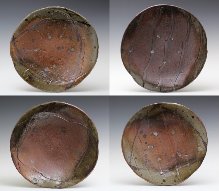 sizes vary, up to 13″ x 13″ x 2″ NC wild clays, Handbuilt, Red Iron OX, Wood fired, Cone 11