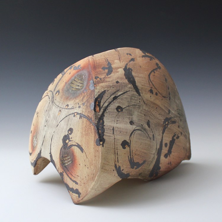 w 15″ x d 10″ x h 11″ NC stoneware, Handbuilt, WIld Clay slips, Red Iron OX, Wood Ash, Wood Fired, Cone 11 - Reconstruction (2021)